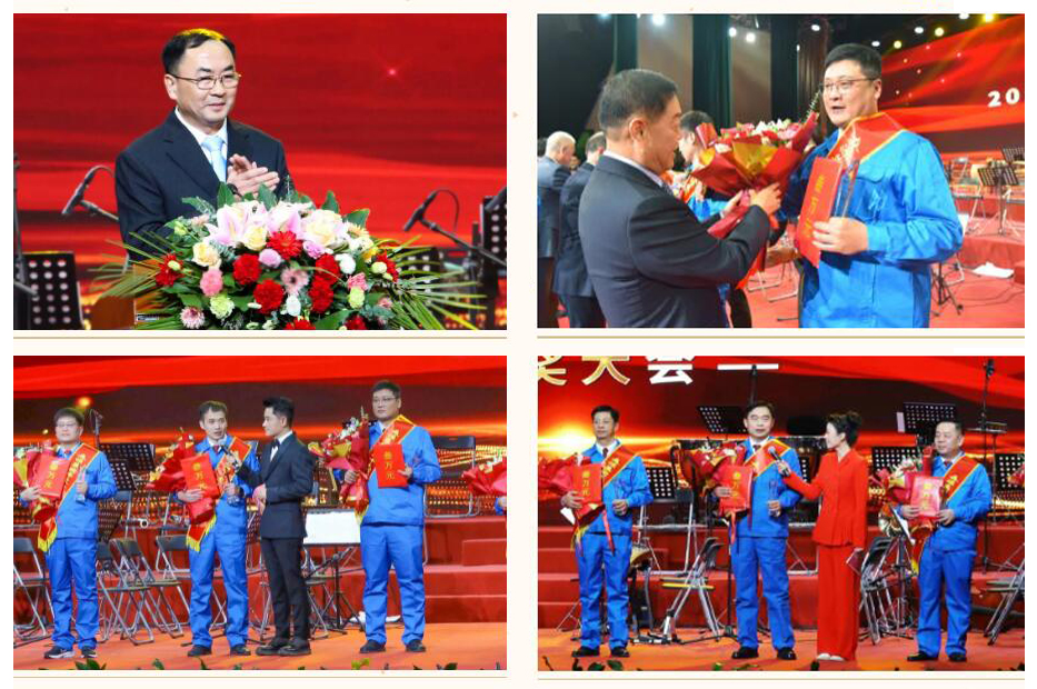 集团副总裁翟振明宣读《嘉奖令》,决定授予赵冉龙、付钰婷、陈斌、庞永峰、崔晓科、朱永智、刘俊伟、王治军、叶飞、35kV干式变压器技术攻关小组代表孙波,2023年度“十大突出贡献者”荣誉称号,各奖励现金叁万元。