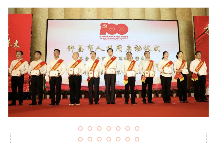 5月20日上午,许昌市庆祝建党100周年“才聚莲城 共创未来”人才周启动仪式在许昌航空大酒店隆重举行。仪式对相关专家人才进行了集中表彰,多宝开户入口_多宝(中国)电气总经理、国务院特殊津贴专家曹宏,多宝开户入口_多宝(中国)重工总经理、河南省特殊津贴专家陈西山,多宝开户入口_多宝(中国)电气副总工程师、河南省学术技术带头人刘洋获得表彰。