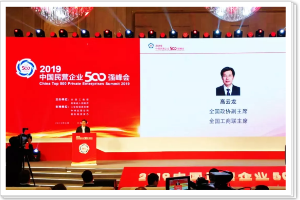 全国工商联党组副书记、副主席樊友山发布500强榜单,全国工商联副主席黄荣发布《2019中国民营企业500强调研分析报告》。