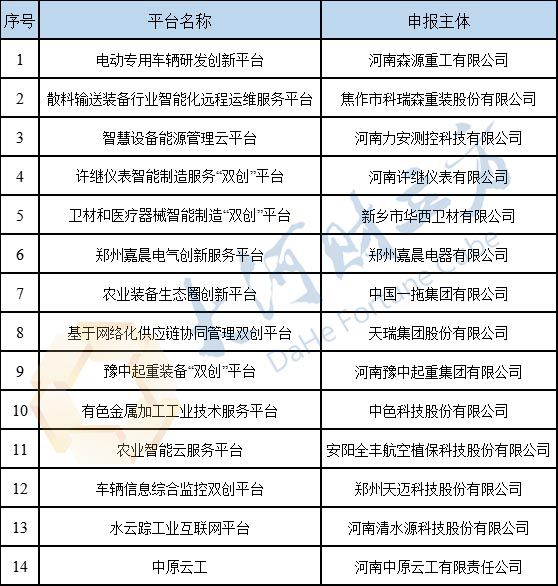 根据专家意见,经研究,拟确定河南多宝开户入口_多宝(中国)重工有限公司——电动专用车辆研发创新平台等14个平台为2018年河南省制造业“双创”平台;郑州宇通集团有限公司——宇通制造业与互联网融合“双创”示范基地等5个基地为2018年河南省制造业与互联网融合“双创”基地。公示时间为2018年10月17日至2018年10月23日。