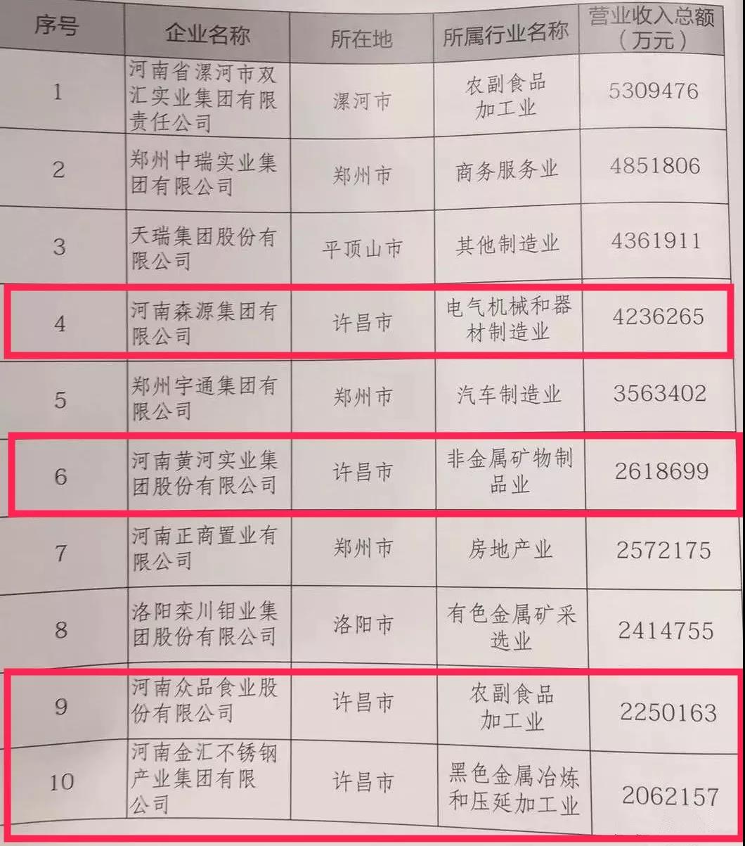 2018“河南民营企业100强”名单,前10名就有咱长葛的4家!多宝开户入口_多宝(中国)集团、黄河集团、众品食业、金汇集团和金阳铝业分别凭借2017年423.6亿元、261.8亿元、225亿元、206.2亿元和35亿元的营业收入入围该榜单,分列第4位、第6位、第9位、第10位和第59位。