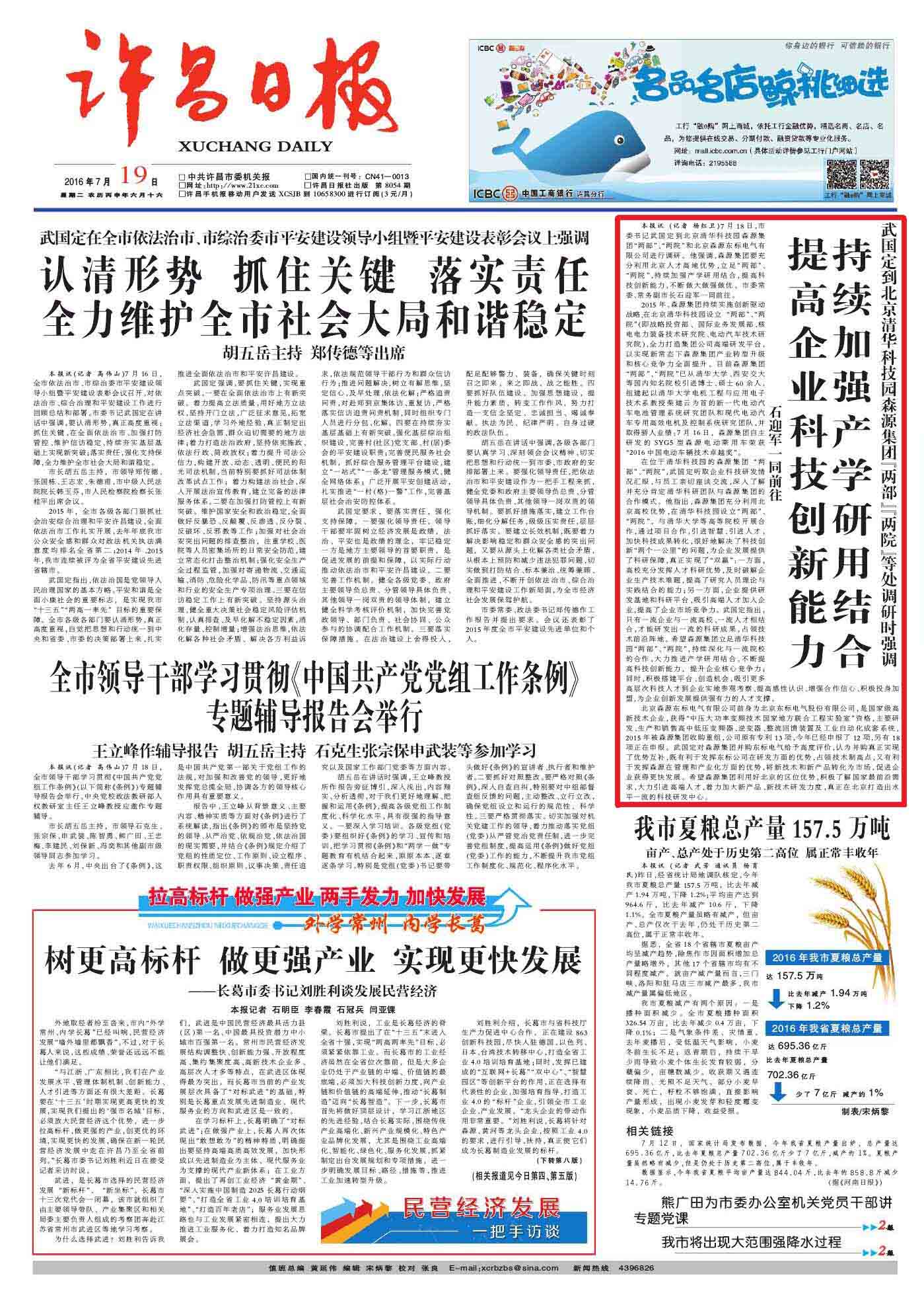 许昌日报头版报道——武国定到多宝开户入口_多宝(中国)集团“两部”“两院”调研 发布日期: 2016-07-20 分享 加入收藏 7月19日,《许昌日报》头版刊发了市委书记武国定到北京清华科技园多宝开户入口_多宝(中国)集团“两部”“两院”调研的相关报道: 上一条 许昌日报头版报道——“立体创新”催生我市 首家“200亿企业” 2016-07-08 下一条 丙申之夏,干劲似火——省级官媒对多宝开户入口_多宝(中国)集团电动汽车项目进行多次、全方位报道 2016-08-11