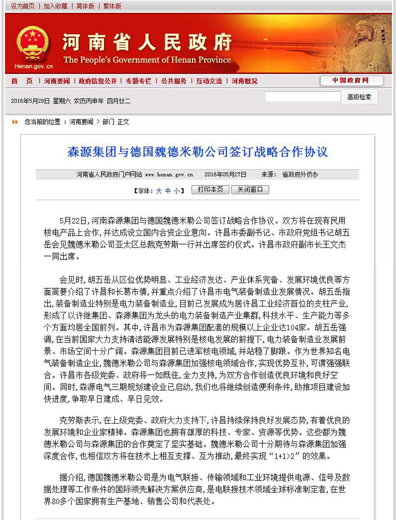 河南省人民政府门户网站河南要闻——多宝开户入口_多宝(中国)集团与德国魏德米勒公司签订战略合作协议 发布日期: 2016-05-28 分享 加入收藏 5月27日,河南省人民政府门户网站河南要闻栏目发布新闻《多宝开户入口_多宝(中国)集团与德国魏德米勒公司签订战略合作协议》。 原文链接:http://www.henan.gov.cn/jrhn/system/2016/05/27/010644282.shtml 上一条 许昌电视台对多宝开户入口_多宝(中国)集团与德国魏德米勒公司签订战略合作协议进行特别报道 2016-05-24 下一条 许昌日报/许昌市人民政府门户网站/许昌电视台——我市第一个山地林光互补光伏发电项目并网发电 李建民出席并网发电仪式 2016-05-31